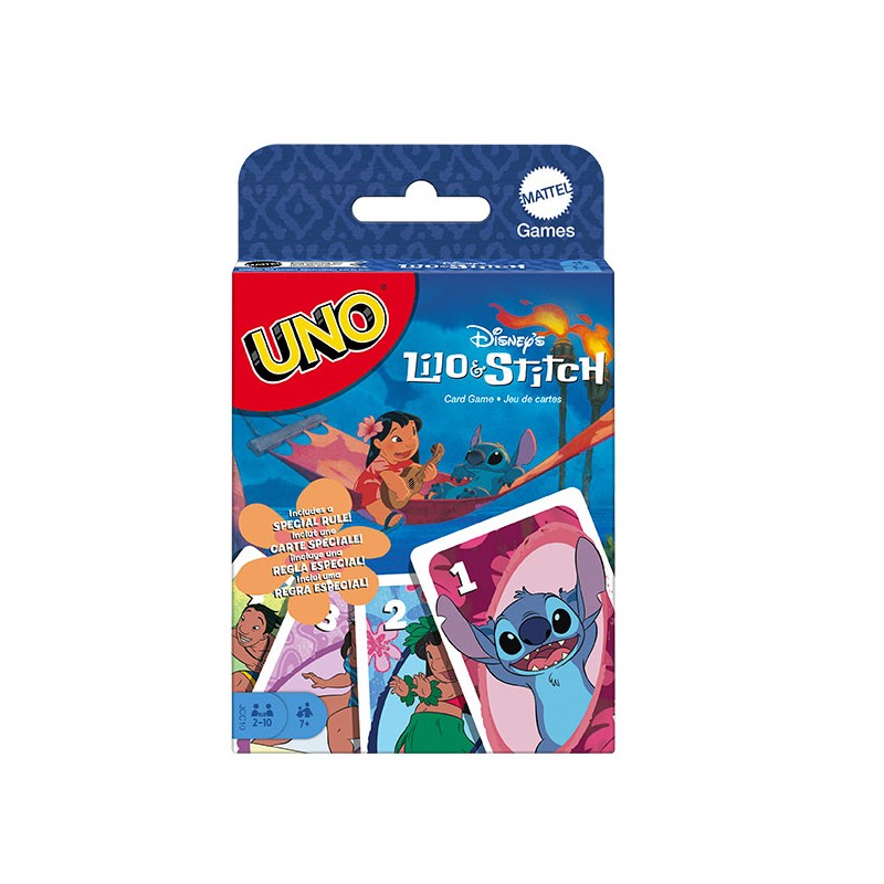 UNO Lilo et Stitch est une version du célèbre jeu de cartes Uno, inspirée par le film d'animation Lilo & Stitch. Les joueurs retrouvent l'univers coloré du film à travers les cartes mais aussi les règles.