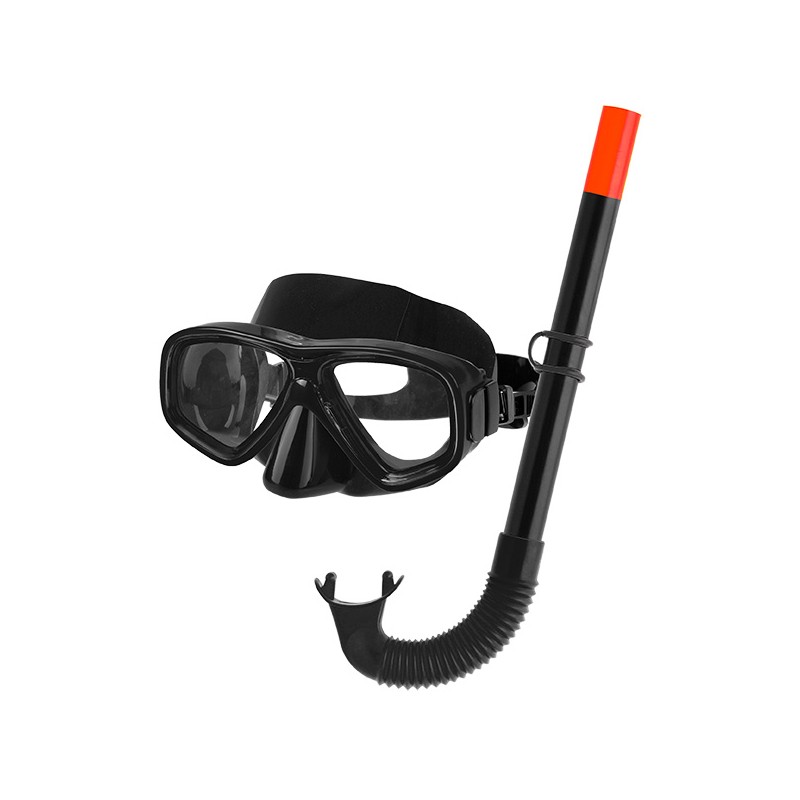 1 set de plongée junior contenant 1 masque (verres en polycarbonate, jupe et sangle en pvc) et 1 tuba