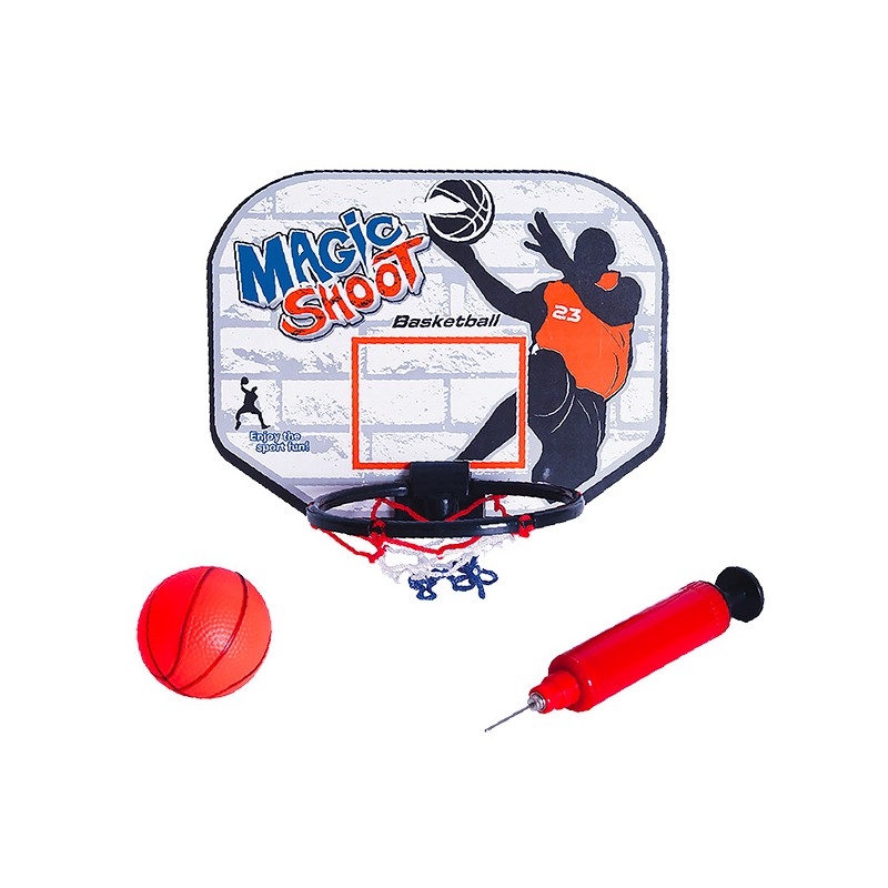 1 panier de basket adhésif décoré, 1 ballon + 1 pompe avec aiguille à ballon