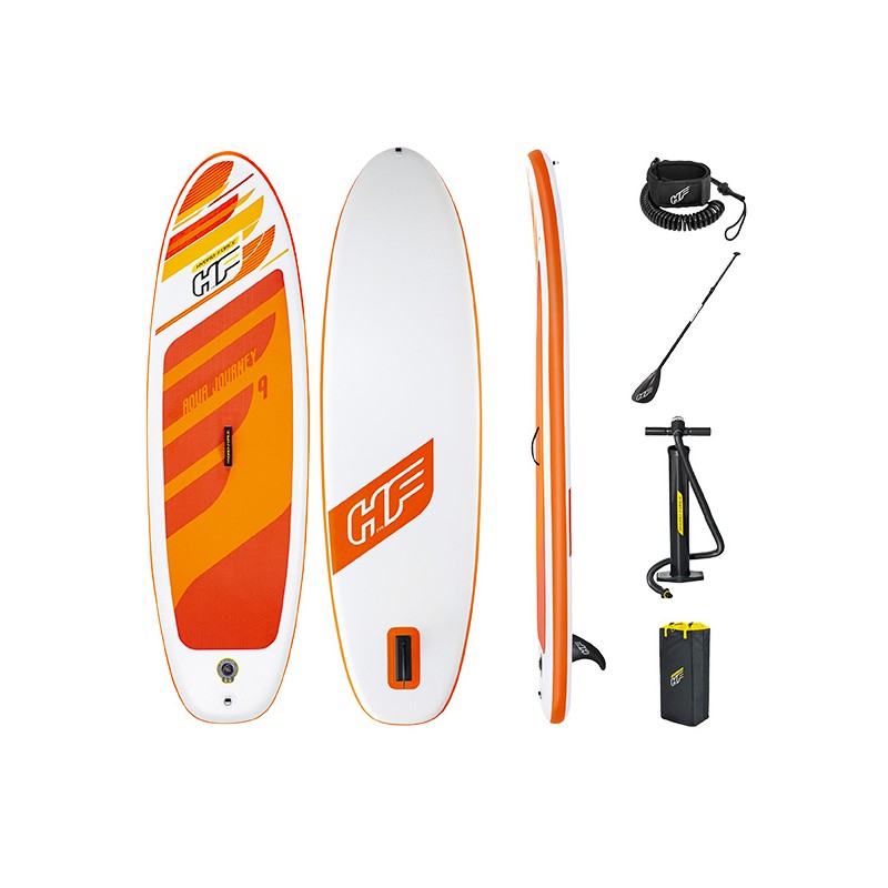 1 paddle 274 cm avec 1 pagaie, 1 pompe et 1 sac de transport. Charge max 100 kgs