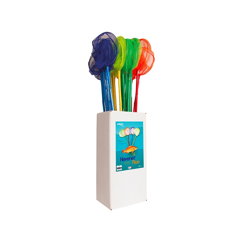 1 havenet fluo ø20 cm manche en bambou coloré en display de 24