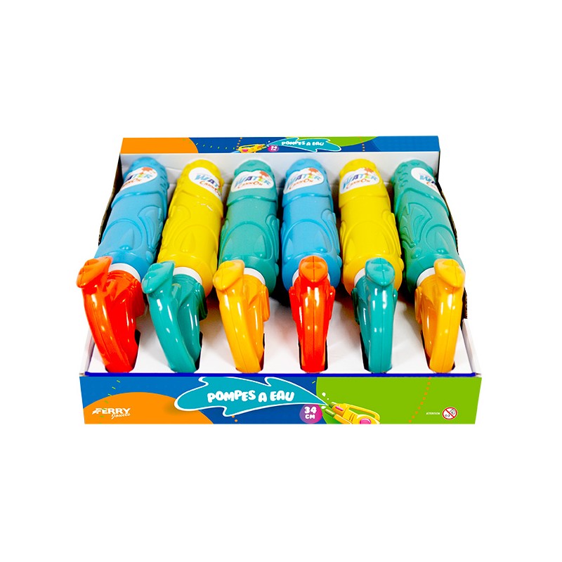 1 display de 6 pompes à eau 34cm. 3 modèles assortis