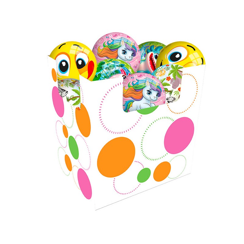 1 box composé de 36 ballons décorés. 4 décors assortis : licorne, jungle, funny face, axolotl
