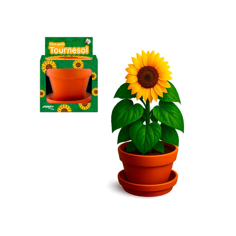 1 kit contenant : 1 sachet de graine pour tournesol, 1 pot en terre cuite de 8 cm + coupelle, 1 plaquette de terre de coco deshydratée et compressée Coloris : Multicolore