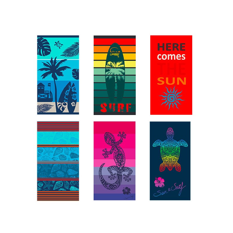6 decors assortis. 1 serviette jacquard 90 x 170 cm 420 gr