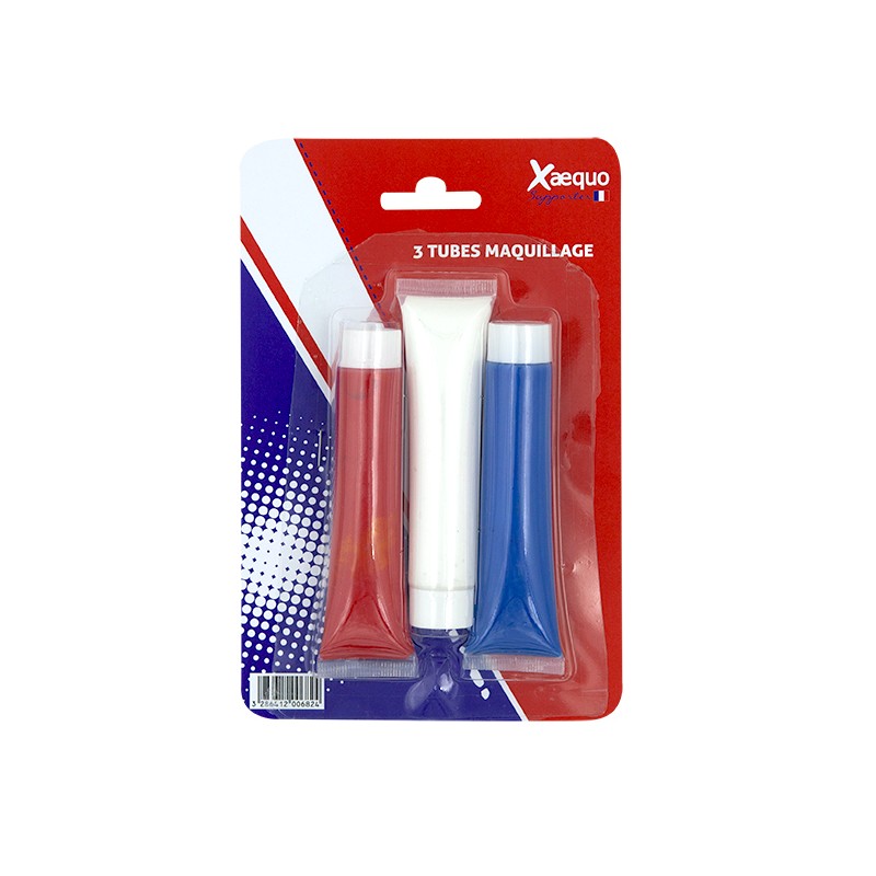 3 tubes de maquilage de 35gr (1 bleu, 1 blanc, 1 rouge)