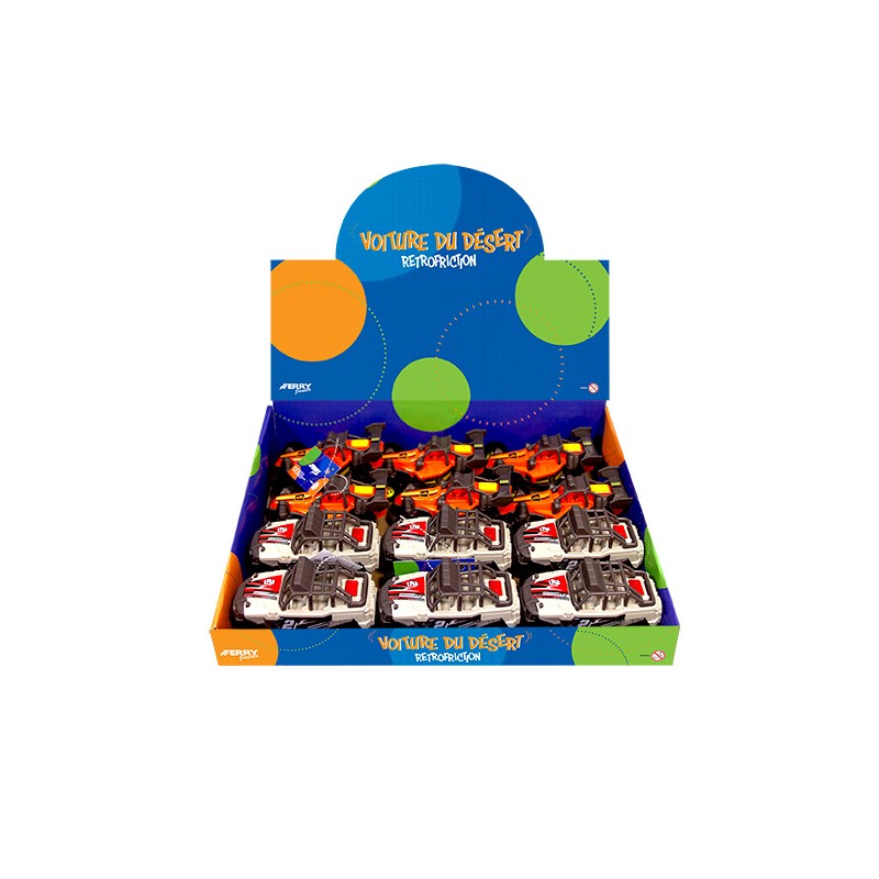 1 voiture du desert en display de 12, 2 modèles assortis : 1 buggy, 1 4x4 Sonore et lumineuse