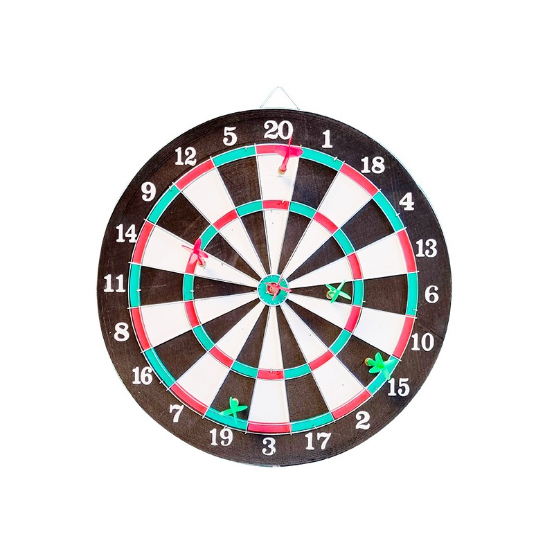 1 cible ø37 cm + 6 fléchettes avec pointes en métal en boite avec anse