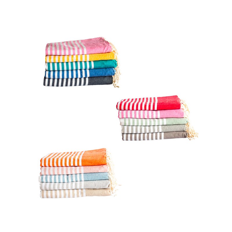 1 paquet de 5 foutas plates bicolores 200 x 200 cm