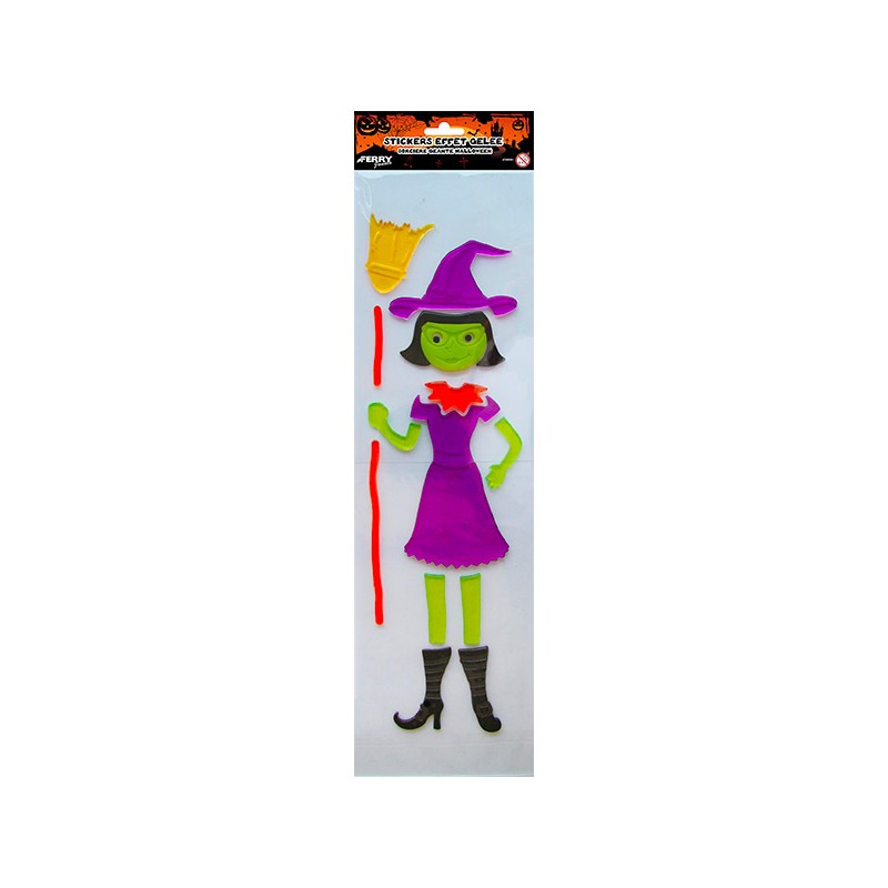1 sorcière géante en sticker effet gelée à coller sur vos surfaces lisses pour décorer avec magie et créer une ambiance ensorcelante.