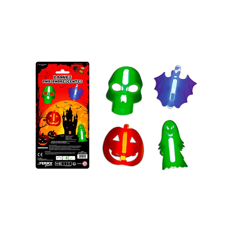 4 BAGUES PHOSPHORECENTES HALLOWEEN