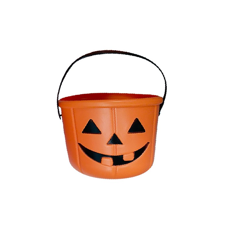 1 seau citrouille rigide ø20 cm pour récolter bonbons et friandises avec style pendant Halloween.