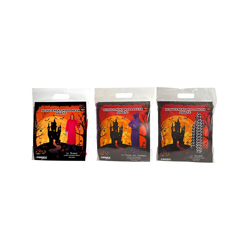 3 modèles assortis : 1 diable rouge, 1 maitre des ténèbres, 1 zombie pour des soirées terrifiantes et pleines de mystère.