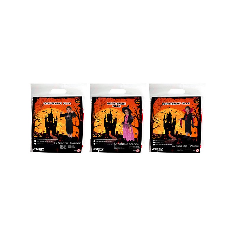 3 modèles assortis de 4/6ans et 7/10ans : 1 démonia, 1 sorcière, 1 araignée pour des fêtes effrayantes et amusantes.