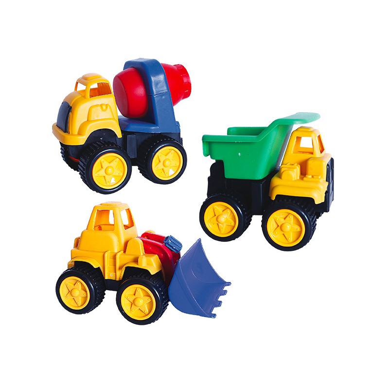 3 modèles assortis : Bulldozer, Toupie, Benne