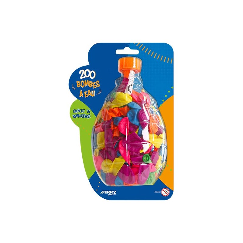 200 bombes à eau multicouleurs + 1 embout pour remplir