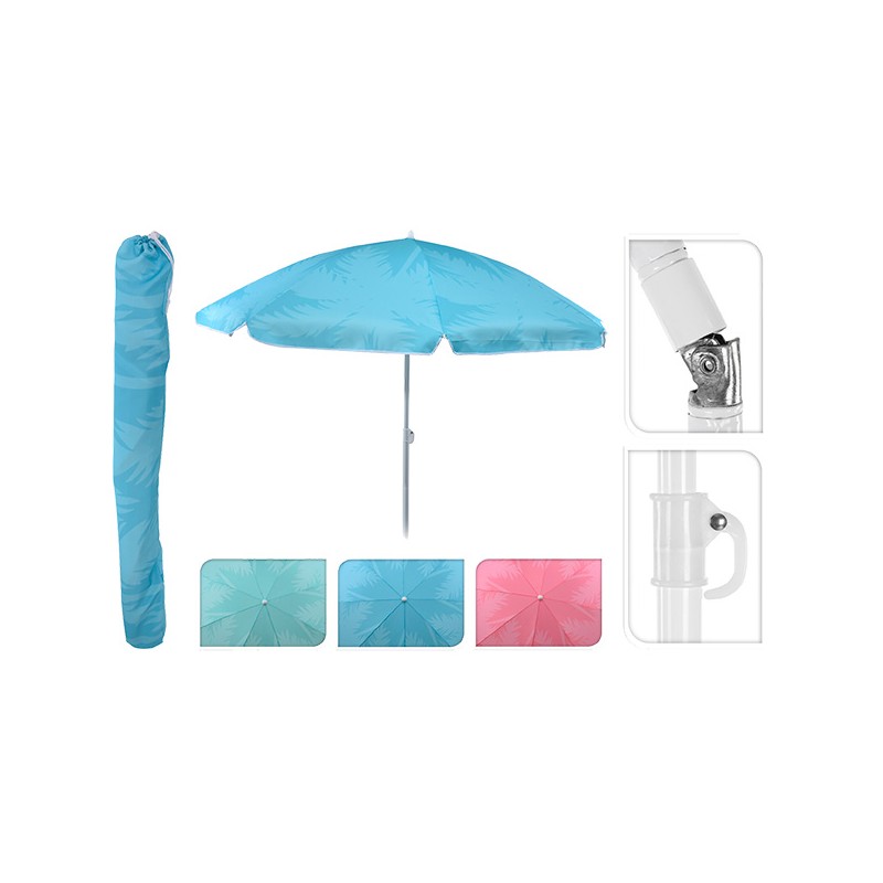 Parasol Ø180cm avec sac de transport assorti 140gr/m² Mat 22/25mm 8 baleines X 3mm Inclinable UPF 30+
