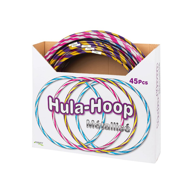 1 display de 45 Hoola hop 3 modèles assortis Ø 75-Ø 67-Ø62 cm
