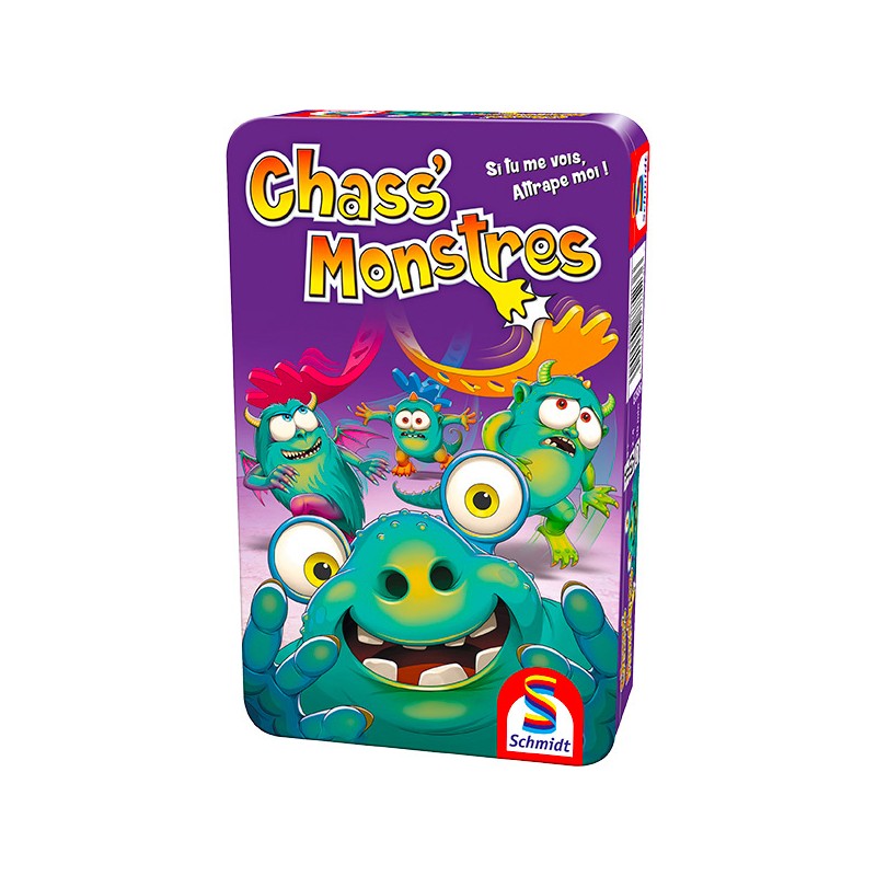 Jeu de poche en boîte métal. Les monstres sont lâchés ! Surtout, ne les laissez pas s'échapper! Celui qui voit un monstre doit rapidement utiliser sa tapette à monstres.