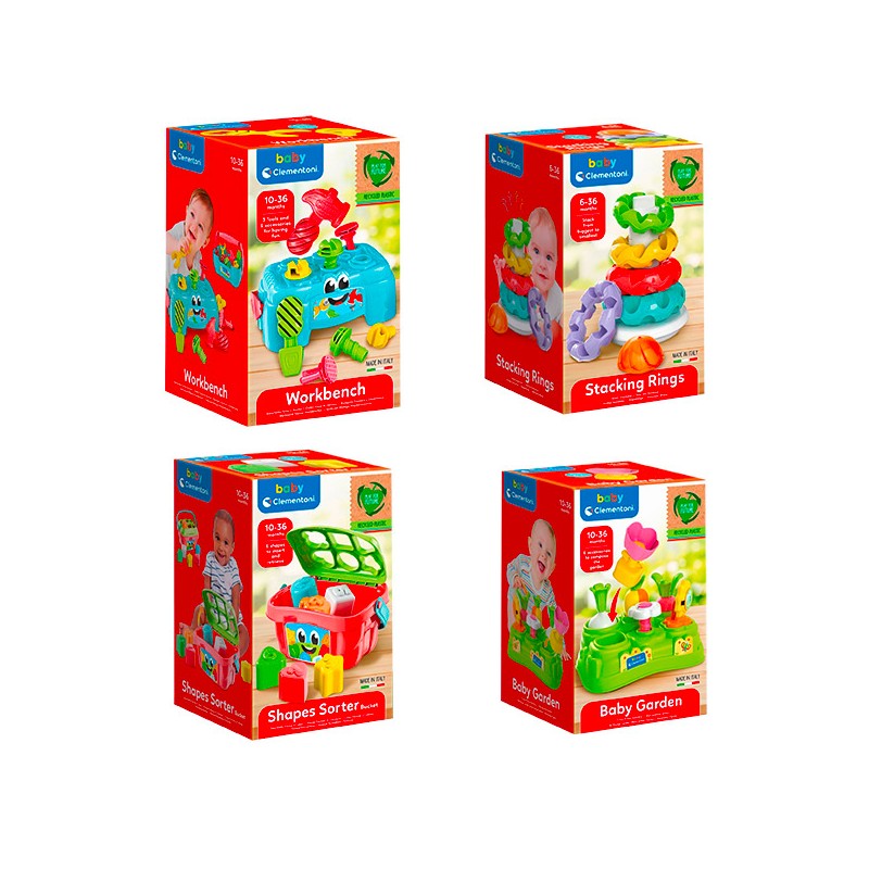 Un assortiment de jeux premières activités pour éveiller votre enfant et développer sa motricité fine, sa coordination et sa perception visuelle. Les jouets de cette gamme sont fabriqués à partir de matériaux 100% recyclés.