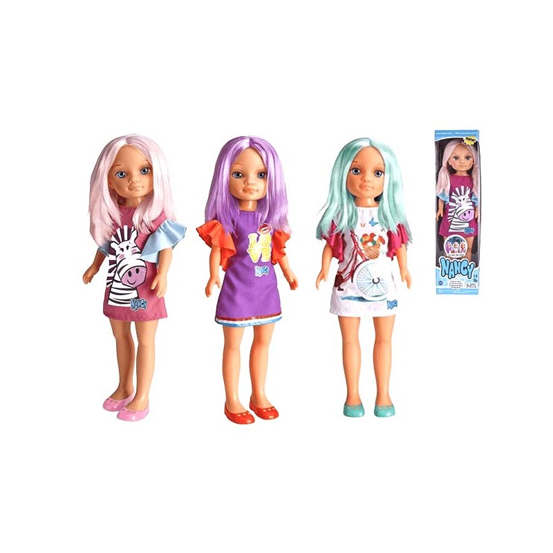 Ta nouvelle poupée Nancy au look en couleurs! Avec ses cheveux et sa tenue colores, Nancy est trop stylée! 3 modèles différents Taille Nancy : 42 cm