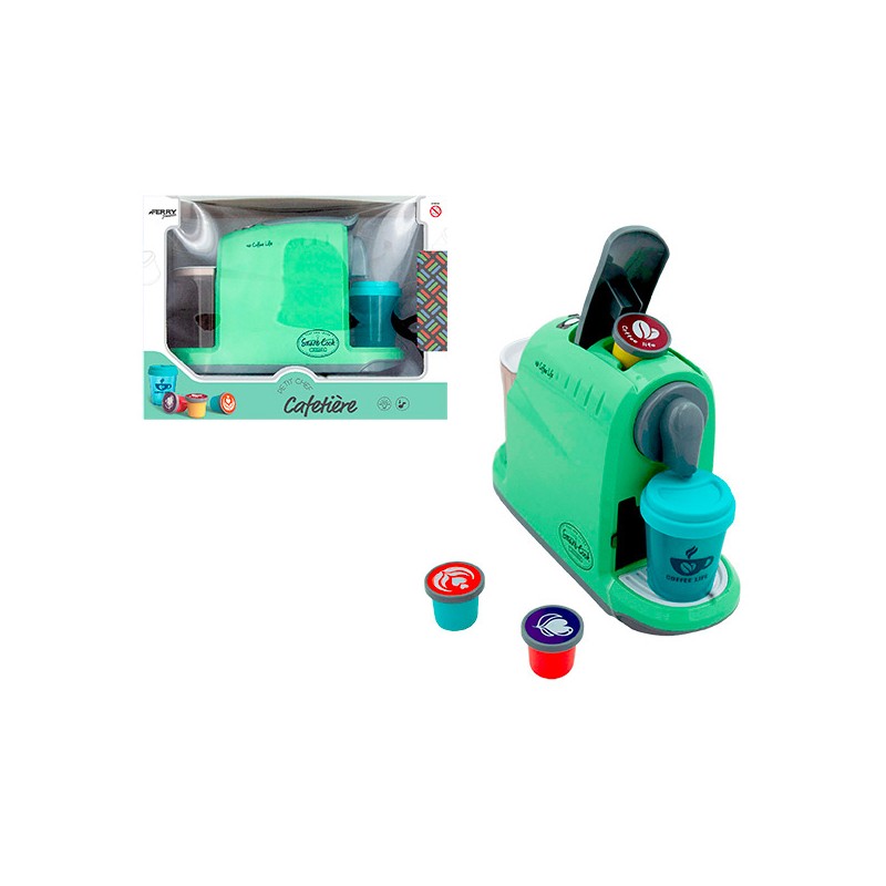 1 cafetière son et lumière avec 3 dosettes et 1 verre pour des jeux dimitation réalistes et des moments conviviaux à imaginer.