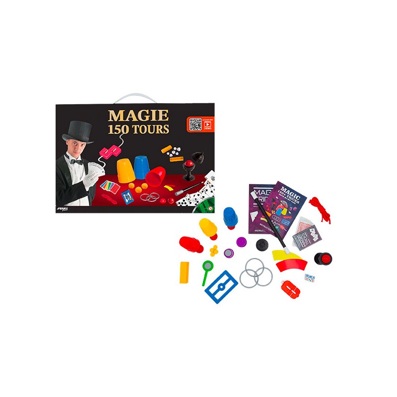 1 coffret magicien 150 tours avec accessoires, les apprentis magiciens impressionneront leur public à chaque représentation.