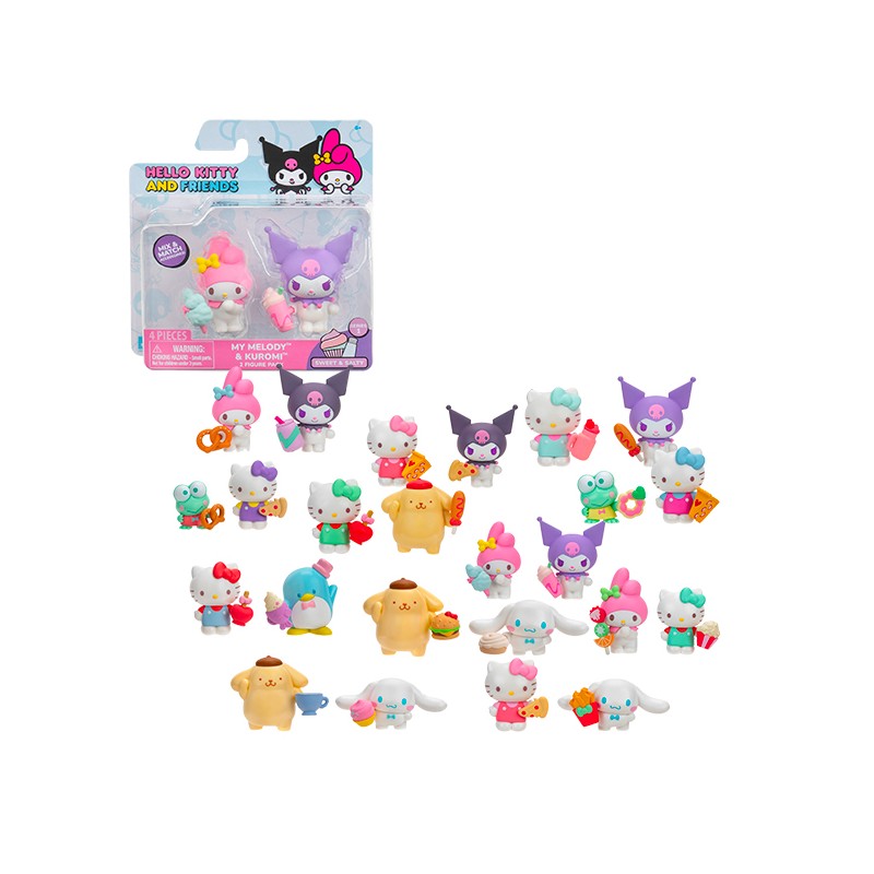 Blister de 2 Personnages de 5 cm de l’univers Hello Kitty. Inclut : 2 personnages avec 2 accessoires qui peuvent être utilisés par tous les personnages. 12 modèles à collectionner. Age : 3a+
