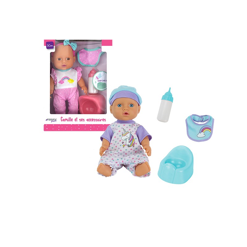 1 poupon 30 cm, 1 biberon, 1 pot, 1 bavoir31/07/2025 Un poupon complice pour inventer des histoires tendres et pleines de style.