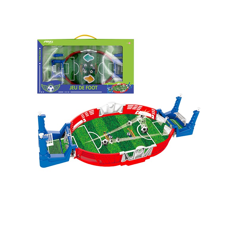 1 jeu de foot composé d'un terrain et de 4 ballons, un véritable mini stade pour des matchs intenses à la maison.