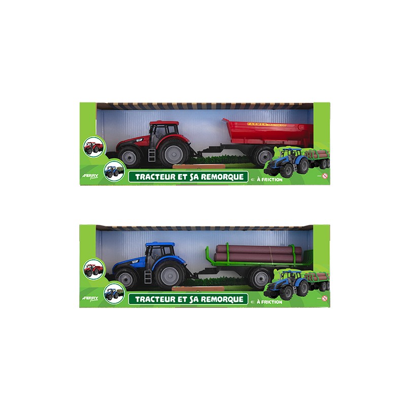 1 tracteur 44 cm à friction avec remorque pour tout transporter !