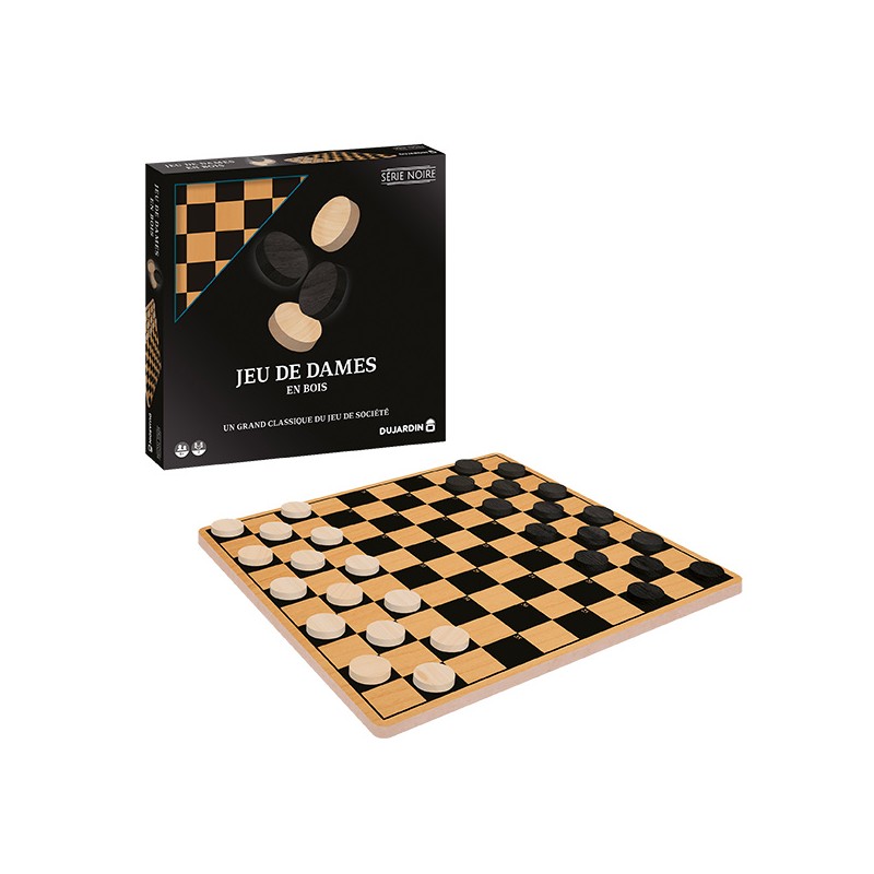 Le jeu de dames est un jeu de plateau. Le damier est composé de 100 cases, chaque adversaire possède 20 pions placés sur 4 rangés. Un classique des jeux de stratégie ! Age : 7 ans