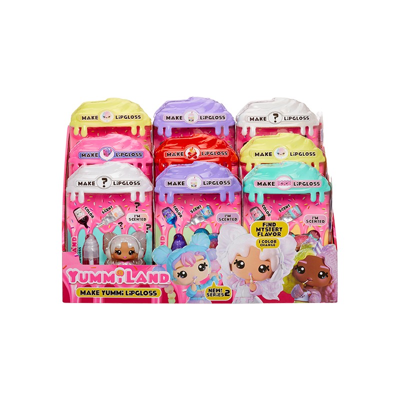 Crée ton gloss parfumé et pailleté : ajoute le parfum secret à la base ainsi que les paillettes magiques, mélange et regarde le gloss changer de couleur. Il reflète la personnalité de ta poupée. Et tu peux les emporter partout ! 7 Yummis parfumées