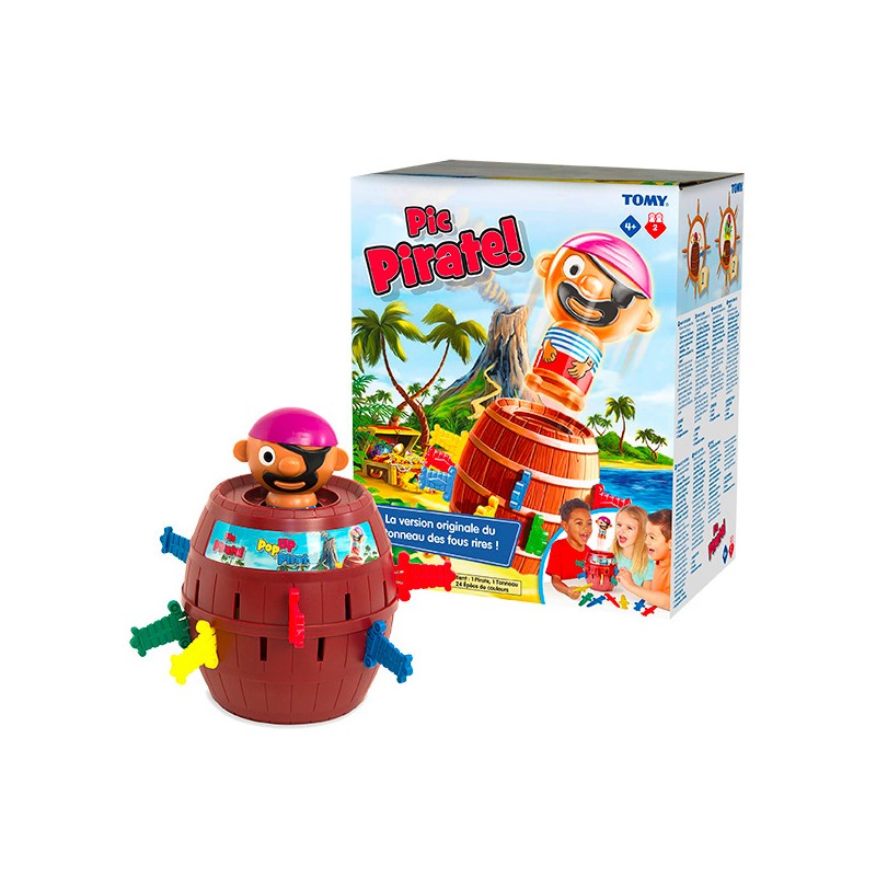 Une version compacte et nomade du célèbre Jeu Pic Pirate. Attention ne chatouillez pas Pic’Pirate pour ne pas l’éjecter du tonneau ! Les épées ne se détachent pas. Pour jouer et rigoler à tout moment ! Age : 4a+