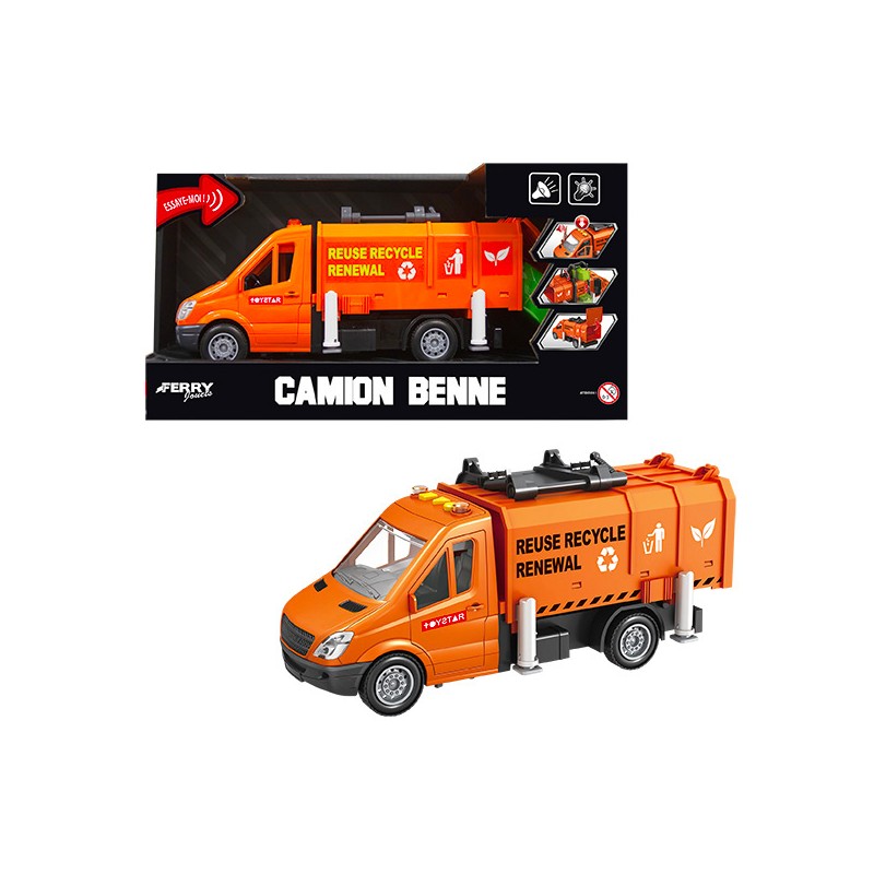 1 camion benne 27 cm à friction, son et lumiere, doté de manivelles et de pompes pour des fonctions supplémentaires il rend les chantiers encore plus réalistes et amusants.