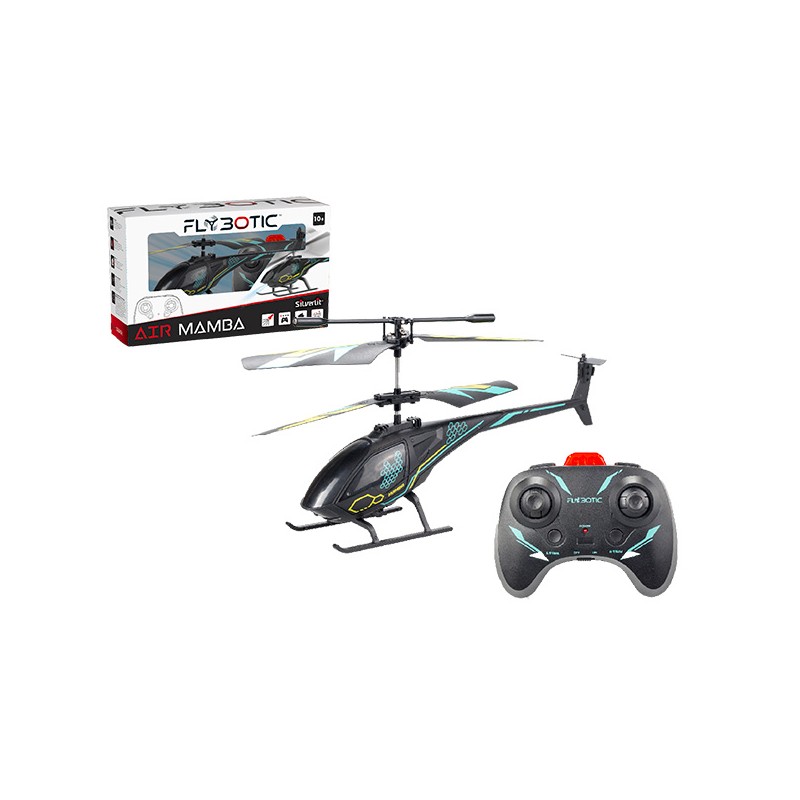 Hélicoptère Air Mamba – 23 cm Technologie infrarouge, 2 canaux pour vol en intérieur. Contrôle parfait de la vitesse et de la stabilité. Batterie rechargeable incluse (hélicoptère), 3xAAA non fournies (émetteur). Dès 8 ans.