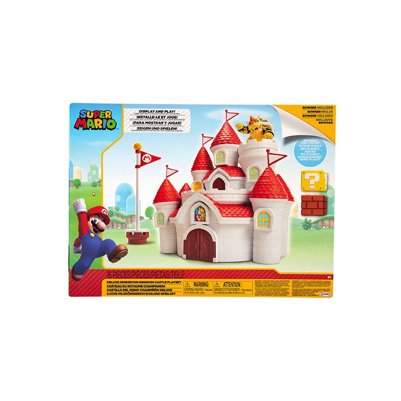 Le château de la princesse Peach se trouve au cœur du Royaume du Champignon. Malheureusement, Bowser s’est emparé du château. Ce playset est compatible avec les figurines de l’univers de Mario à collectionner.