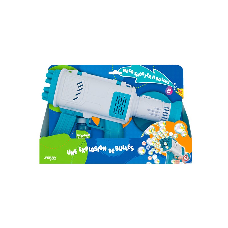 Mega shooter à bulles 24 trous, 1 plateau pour les bulles et 1 recharge de 50 ml