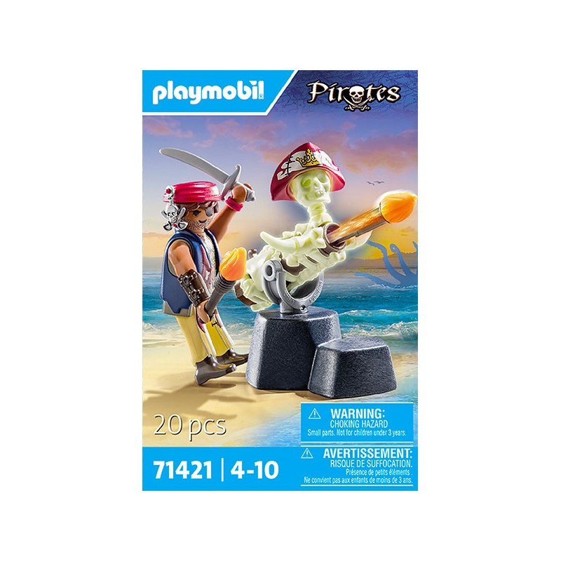 PLAYMOBIL 71421 Canonnier des pirates - Pirates - Avec un pirate, un canon et des projectiles - 20 pièces.