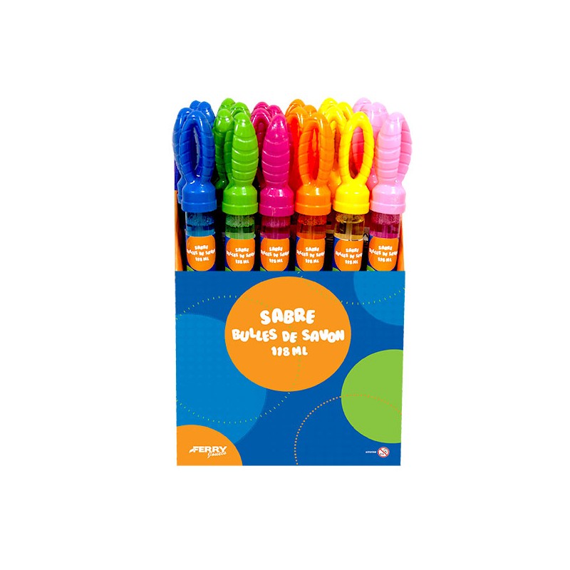 1 sabre à bulle 118 ml en display de 24. Pour créer des bulles colorées et magiques lors de moments de jeu en plein air.