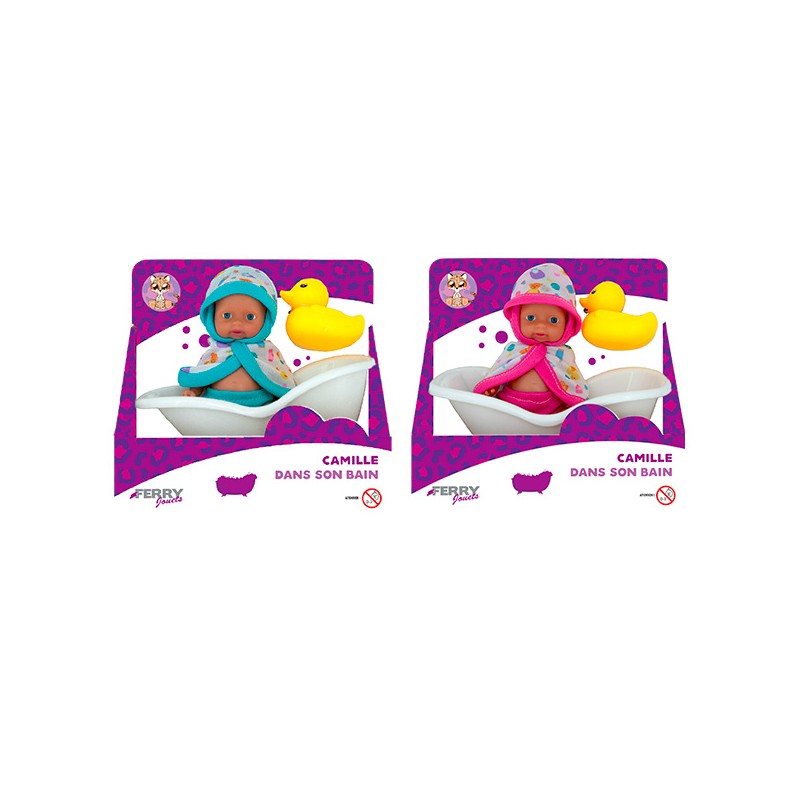1 mini poupon avec son peignoir, son canard et sa baignoire. Camille dans son bain c'est 1 mini poupon avec peignoir, canard et baignoire pour rejouer les rituels du bain en toute tendresse.