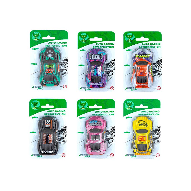 6 décors assortis. Auto Racing en métal à rétrofriction pour foncer sur la piste et relever tous les défis des circuits les plus rapides.