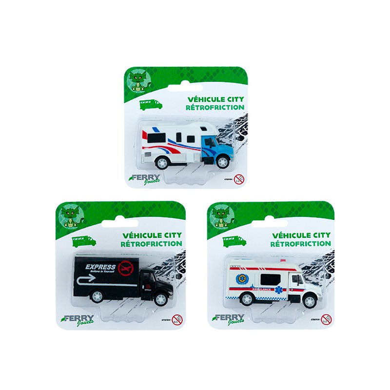 3 modèles assortis : 1 ambulance, 1 caravane, 1 camion de livraison. Mini véhicule City en métal à rétrofriction pour rouler en ville et imaginer des aventures urbaines pleines daction.