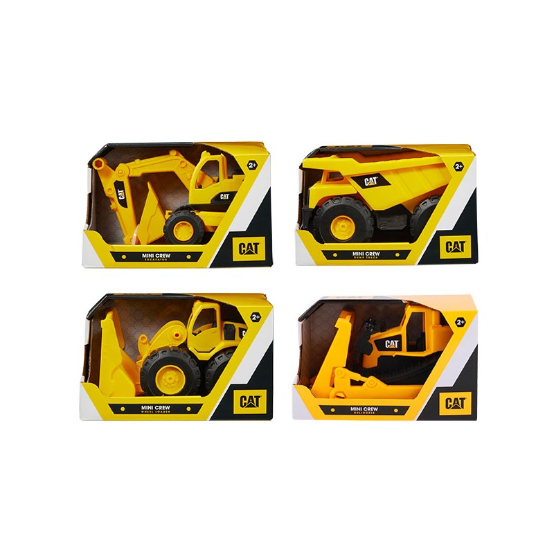 CAT - VEHICULE MINI CREW 18CM A L'UNITE - ASSORTIMENT. 4 VERSIONS DE VEHICULES DISPONIBLES : CAMION BENNE, BULLDOZER, CHARGEUR FRONTAL, EXCAVATRICE. VEHICULES. DES 2 ANS