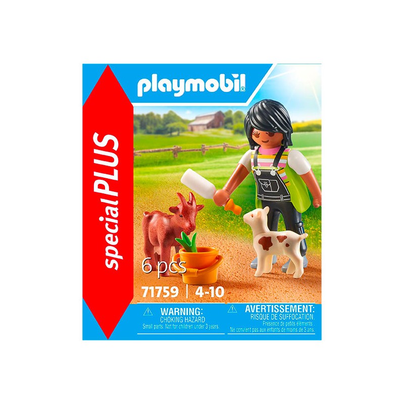 FERMIERE AVEC CHEVRE ET CHEVREAU