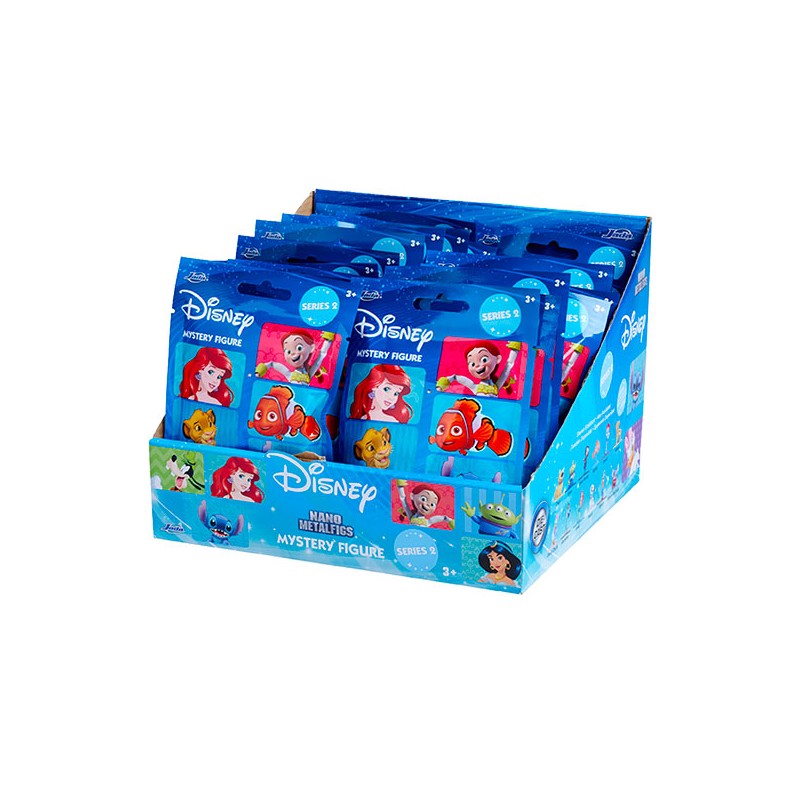 Figurines en métal de 4cm en blind pack dans un display de 24 pièces. 12 modèles différents dont 2 exclusifs. Les figurines représentent les personnages de Disney : Dingo, Daisy, Stitch, Jasmine, Némo, Simba... Série #2.