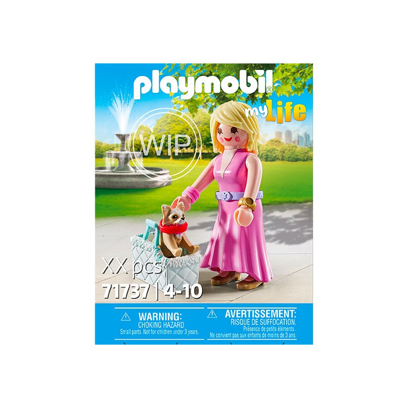 DAME AVEC CHIHUAHUA ET PANIER TRANSPORT