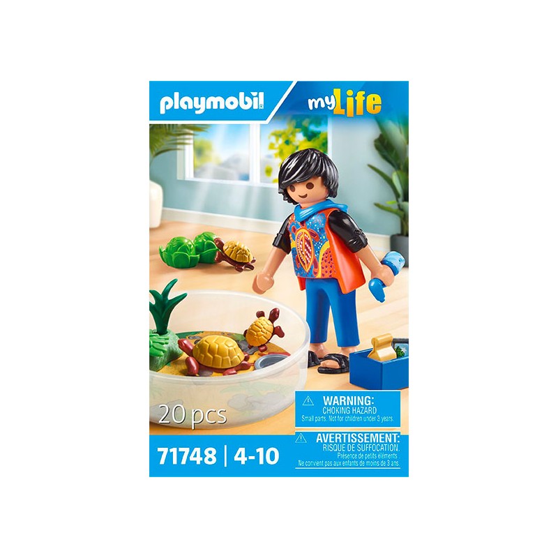 Comprend un personnage, une tortue et un bébé tortue et des accessoires