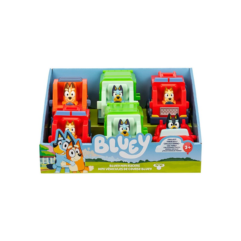 Découvre les mini véhicules Bluey ! 4 à collectionner : Bluey et camion poubelle, Bingo et camion pompier, Bandit et décapotable et Chili et 4x4. Age : 3a+