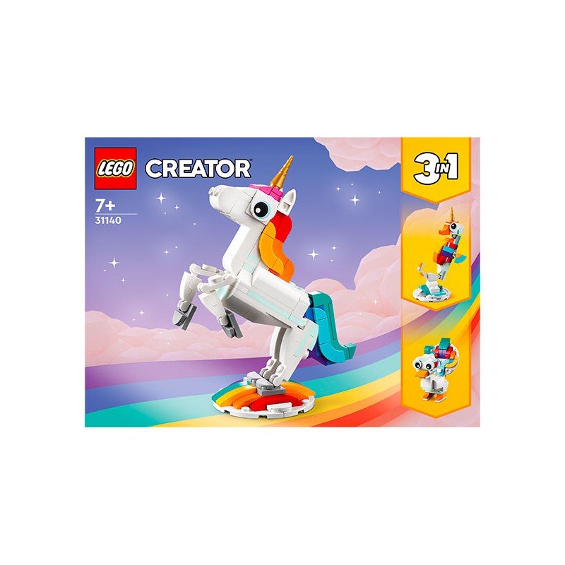 LES ENFANTS PEUVENT SAMUSER DANS UNE CONTRÉE LÉGENDAIRE AVEC LA BELLE LICORNE MAGIQUE LEGO® CREATOR 3-EN-1, PUIS LA TRANSFORMER EN HIPPOCAMPE OU EN PAON. Age : 7a+